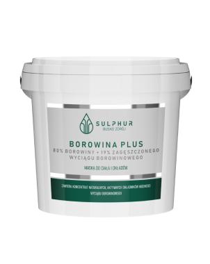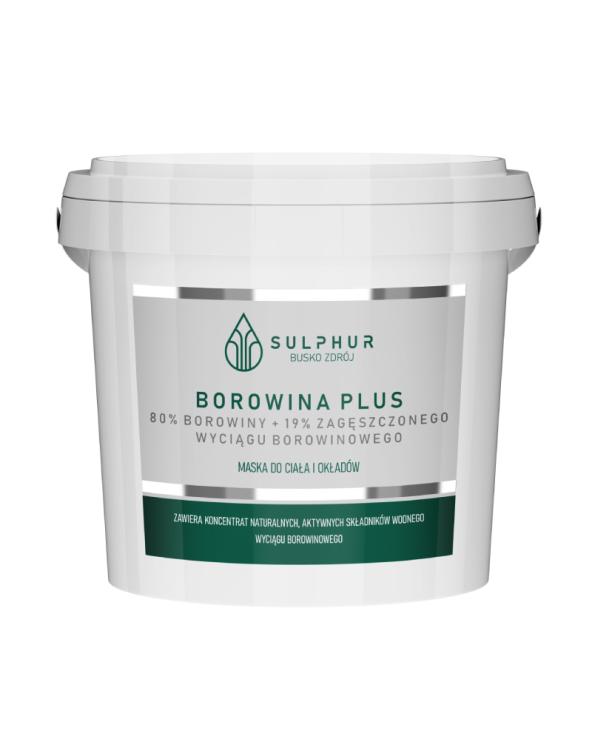 Borowina plus to koncentrat aktywnych składników borowin zalecany do okładów. Pobudza produkcję elastyny i kolagenu w skórze. Stymuluje odnowę tkanek. Wodny wyciąg borowinowy zawarty w preparacie dodatkowo łagodzi stany zapalne. Okłady borowinowe przedłużają kurację sanatoryjną. Jedną porcję produktu można użyć nawet do 5 razy.