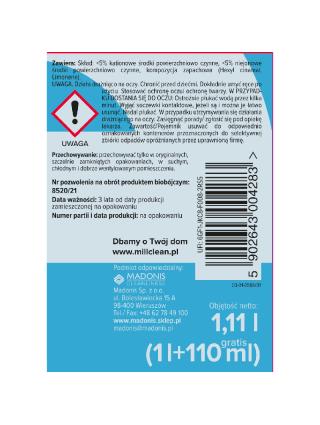 Produkt przeznaczony do mycia i dezynfekcji różnego rodzaju powierzchni myjących, jak i nie mających kontaktu z żywnością. Produkt wykazuje działanie bakteriobójcze i grzybobójcze.