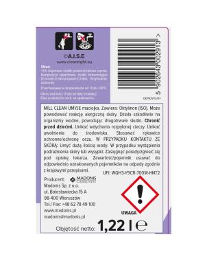 Mill Clean Umyje to niezwykle skuteczny płyn do mycia szyb, luster, glazury, luksferów oraz innych powierzchni szklanych o zapachu maciejki, który czyści szybko i skutecznie. Dzięki zastosowaniu specjalistycznej formuły "NANO clean", zawierającej nano dwutlenek krzemu, preparat znakomicie chroni przed wtórnym osadzaniem zanieczyszczeń i zapobiega zaparowywaniu.